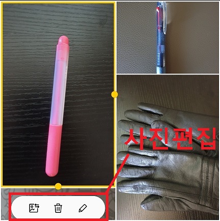 아래쪽 편집 아이콘을 클릭하면 개별 사진 편집 삭제 가능하다.
