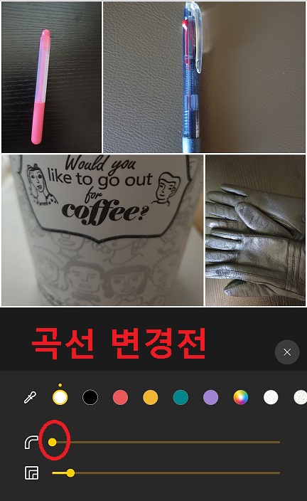 곡선 모양으로 4개 사진 합치기가 되었다.
