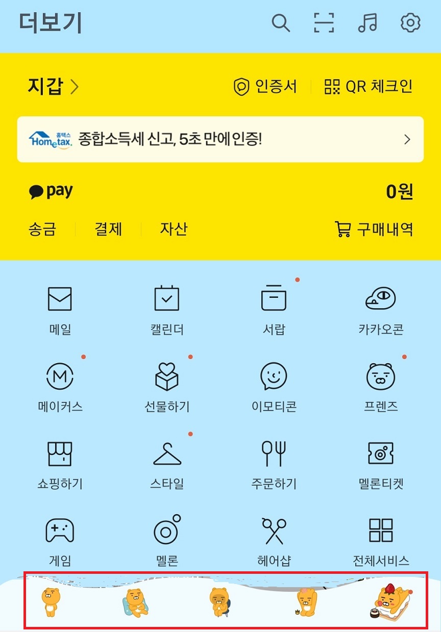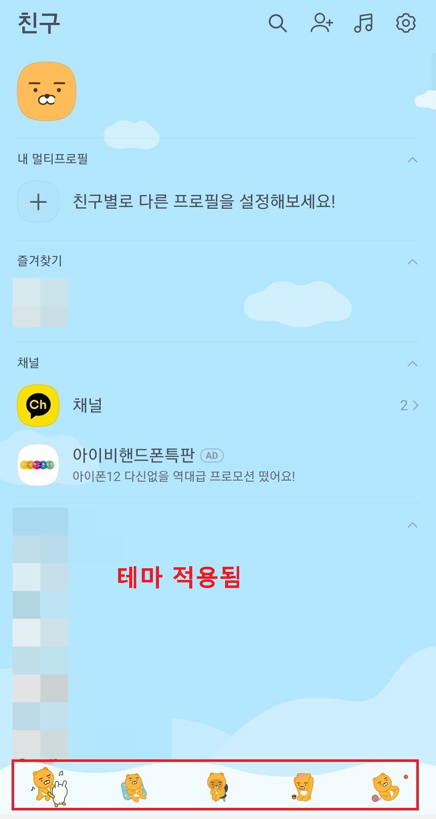4. 화면을 아래로 좀 더 내리면 오늘 다운로드하여서 적용할 카카오톡 테마가 보인다.