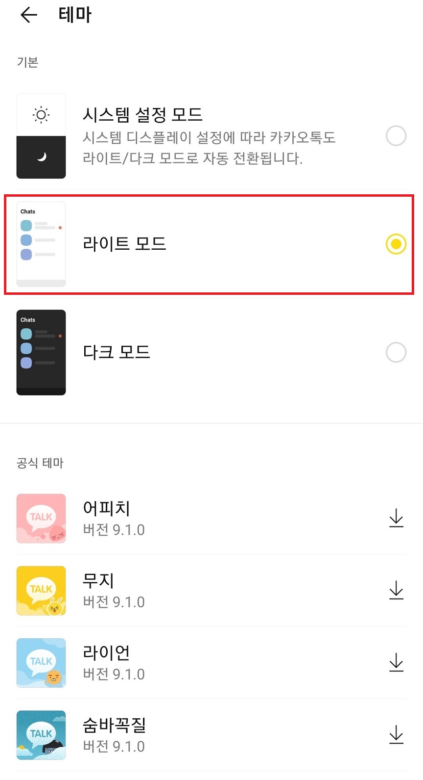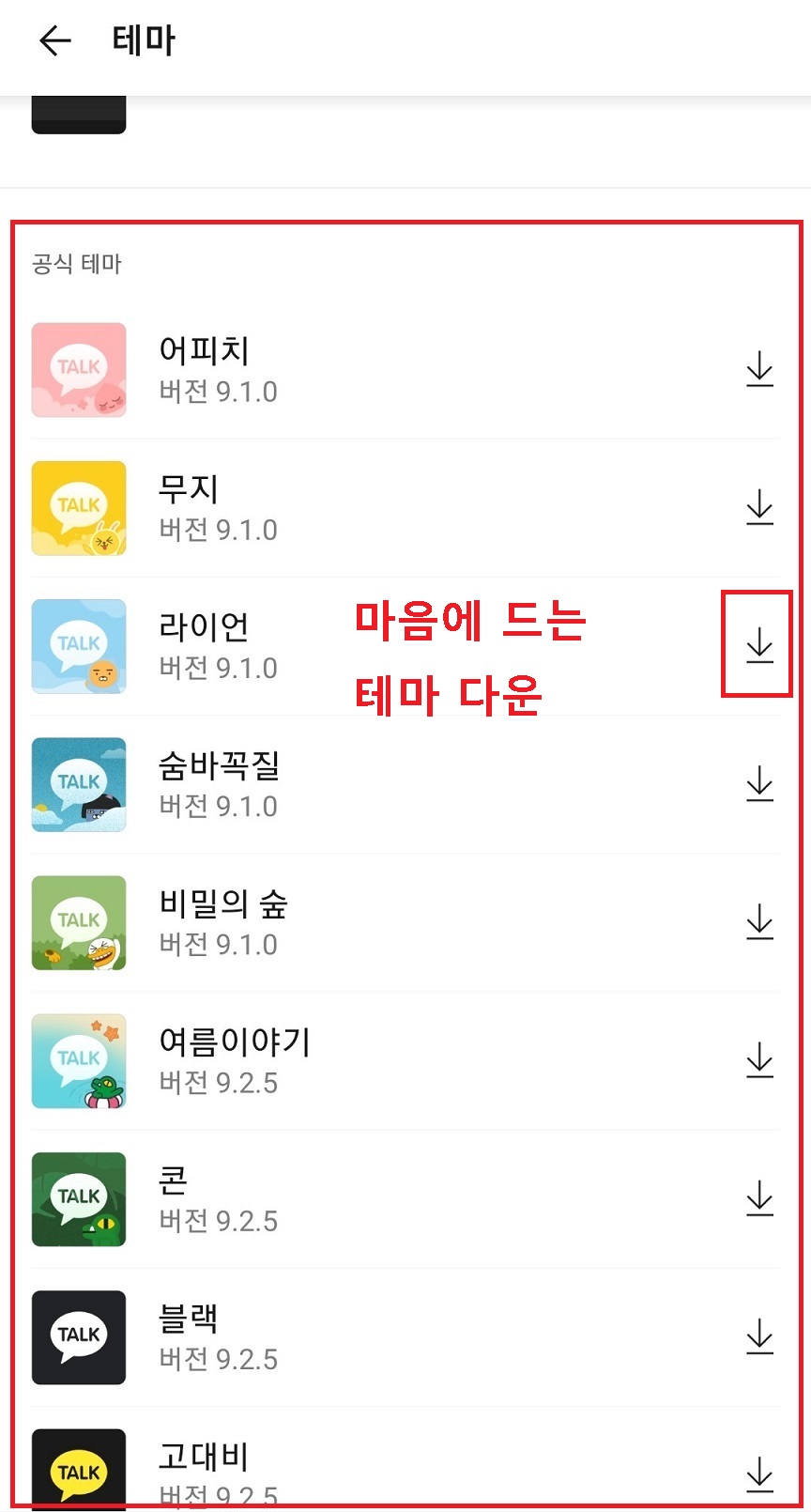 이중 마음에 드는 카카오톡 테마를 다운로드한다.