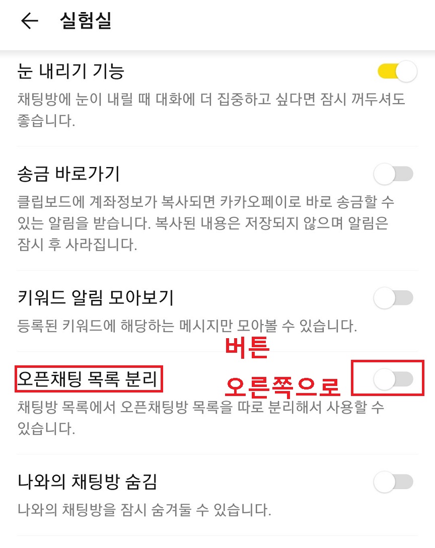 4. 실험실 페이지에서 오픈 채팅 목록 분리를 확인하다.