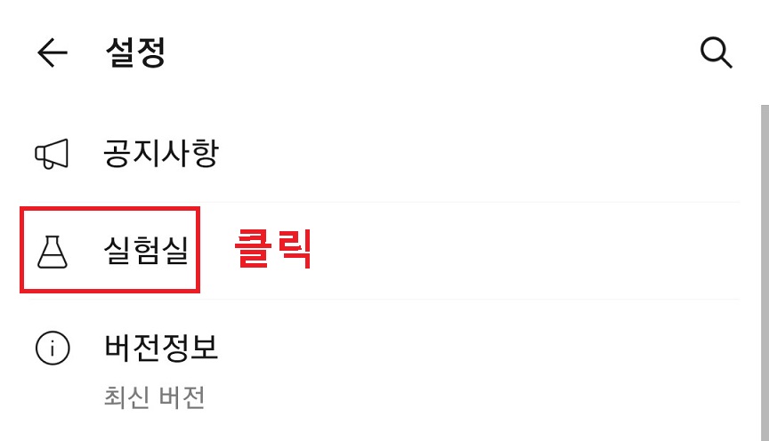 3. 설정 페이지에서 실험실을 클릭한다.