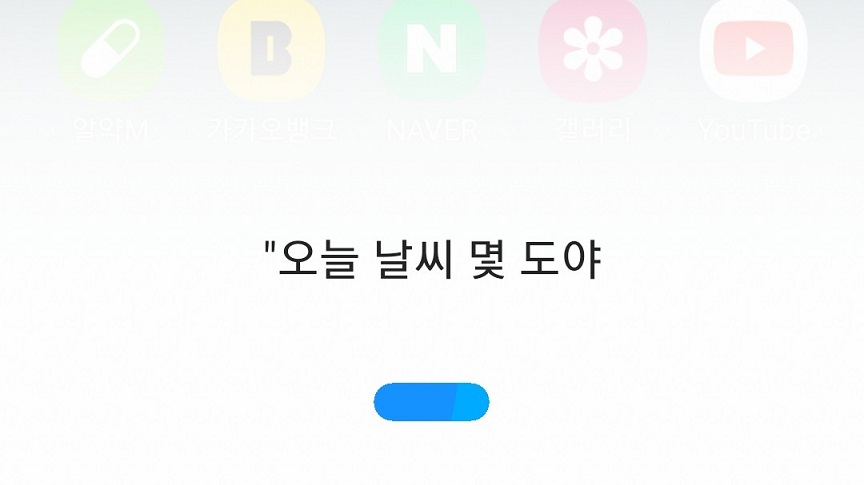 그럼 화면 아래 사진과 같은 아이콘이 생기는데 버튼을 계속 누른 상태에서 명령을 말한다.