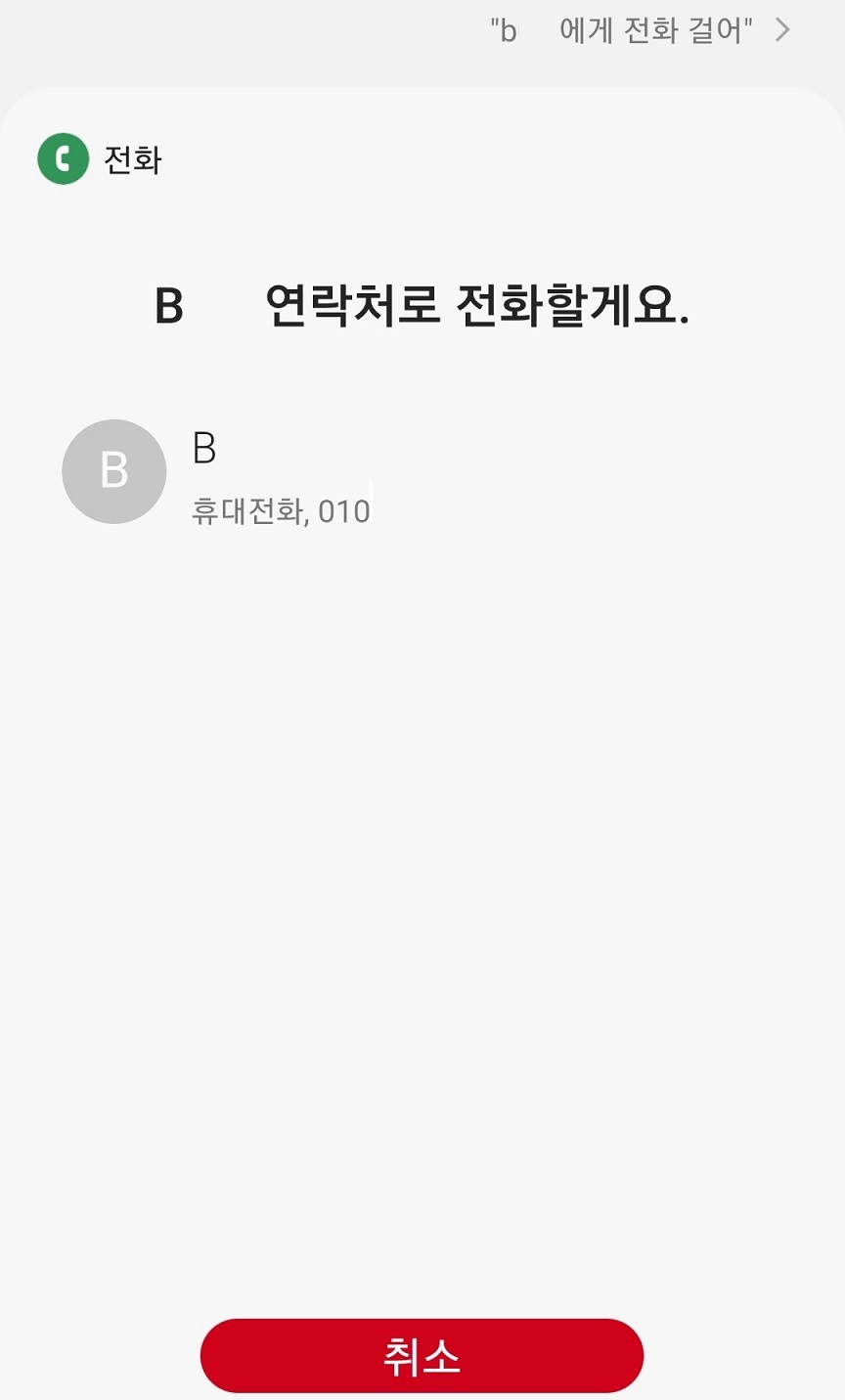 21. 이제 실제로 내가 지정한 사람에게 빅스비가 전화를 걸고 있다.
