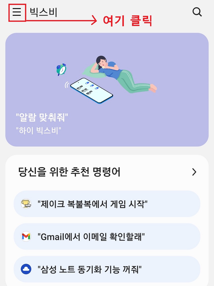 5. 빅스비 좌측 상단에 표시 부분을 클릭한다.