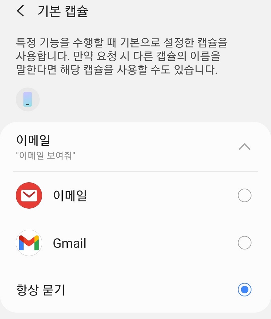 특정 기능을 실행할 때 기본으로 지정한 캡슐(앱)을 사용하게 된다.