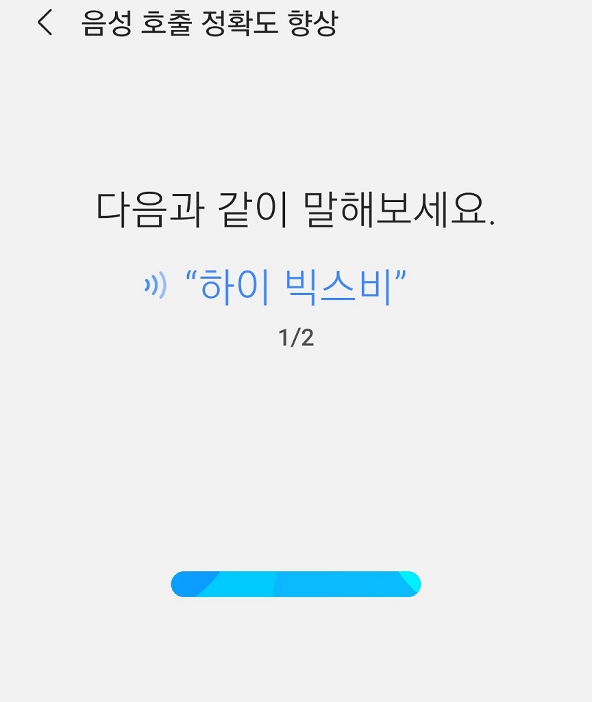 10. 안내 메시지에서 시키는 대로 '하이 빅스비' 라고 반복하여 말한다.
