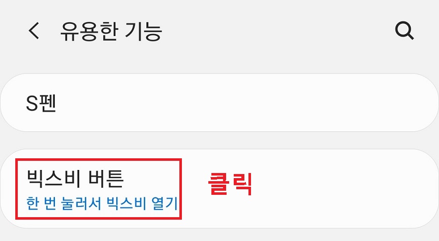 이것은 현재 빅스비 버튼을 한번 누르면 빅스비가 실행되게 설정되어 있는 것이다.
