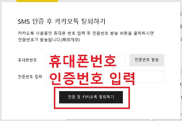 그리고 인증 및 카카오톡 탈퇴하기를 클릭하면 된다.
