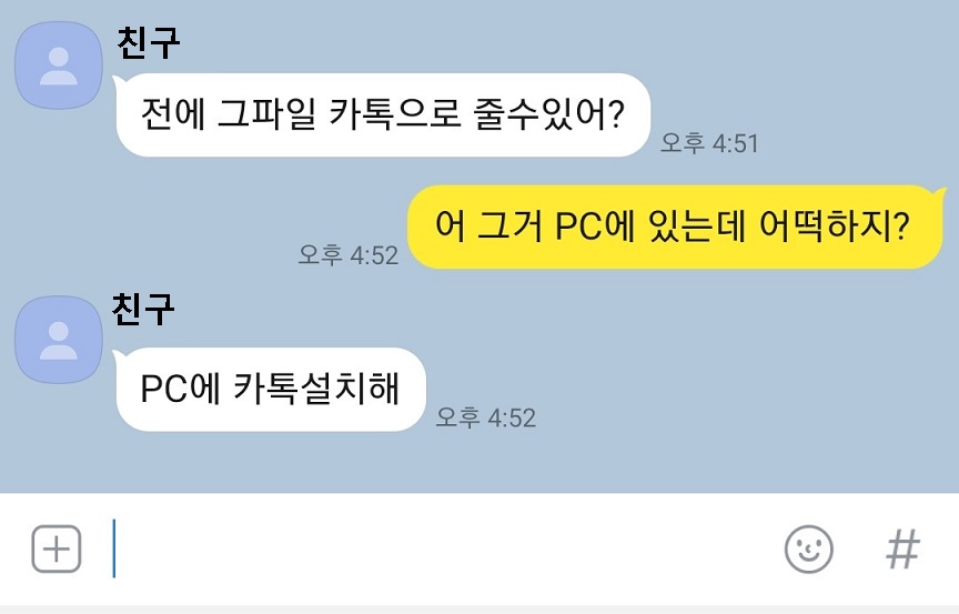 PC 컴퓨터에 있는 문서나 사진을 카카오톡으로 공유해주기를 원하는 지인이 있다면?
