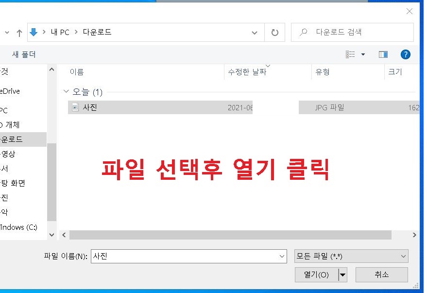 2. 공유하고자 하는 파일 선택 후 하단 열기를 클릭한다.