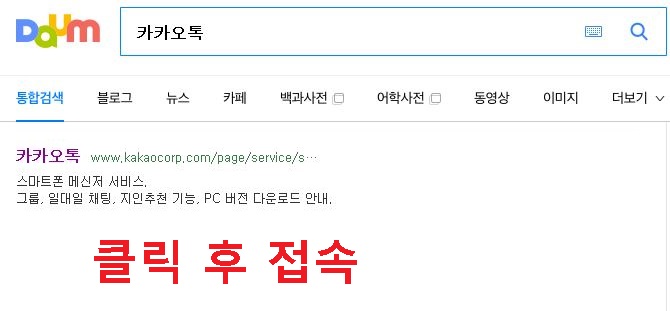 1. 포털에서 카카오톡을 검색 후 클릭하여 카카오톡 홈페이지로 접속한다.