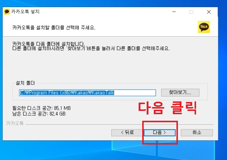 이것을 클릭하면 PC 카카오톡 설치하기가 시작된다.