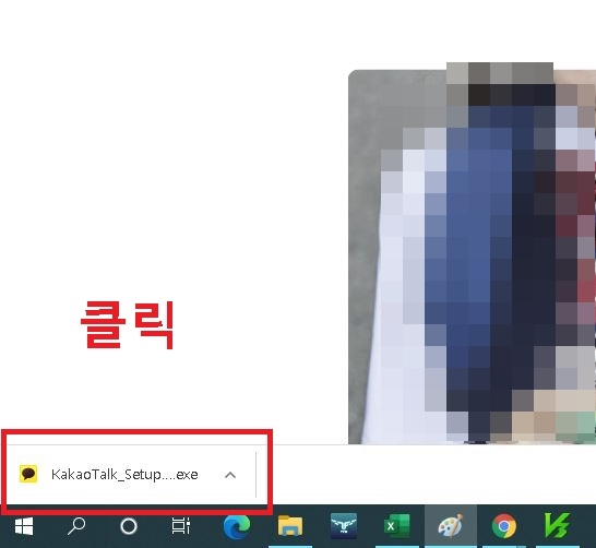 3. 그럼 바로 카카오톡 파일이 다운되면서 PC 아래에 실행파일이 나타난다.