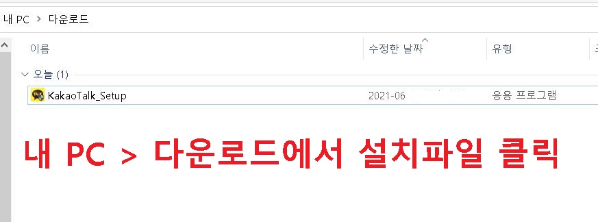 이게 아니면 내 PC > 다운로드에 가면 카카오톡 설치 파일이 다운로드되어져 있다.