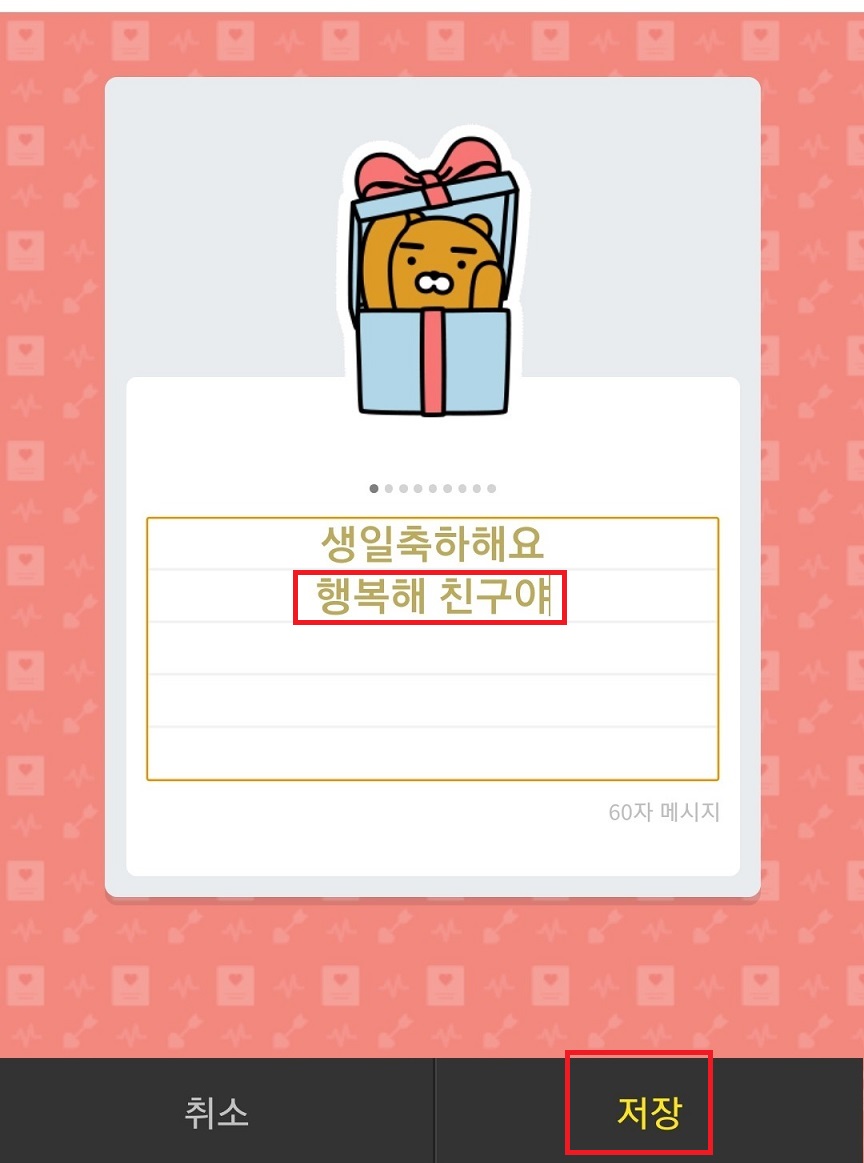 이렇게 하면 카카오톡 선물하기 방법으로 선물 받은 친구에게 선물과 함께 메시지가 전달된다.