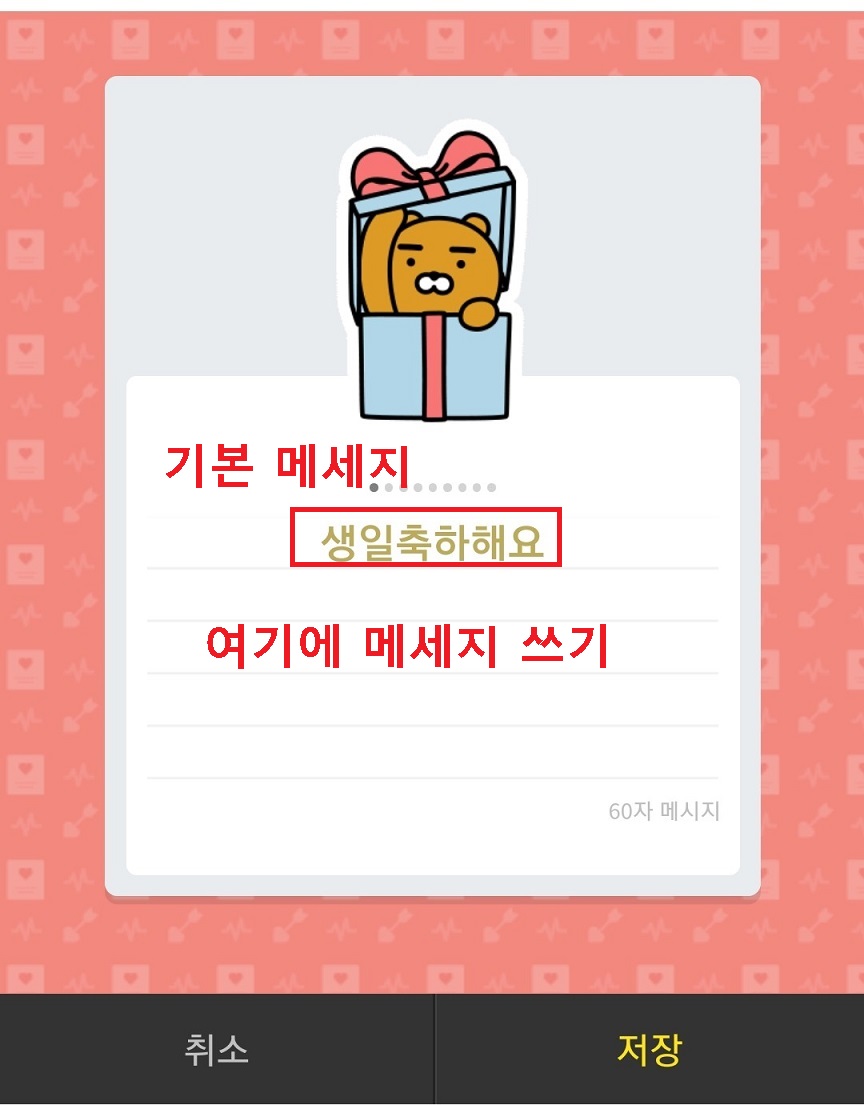 상단에 생일 축하해요라는 기본 메시지가 보인다.