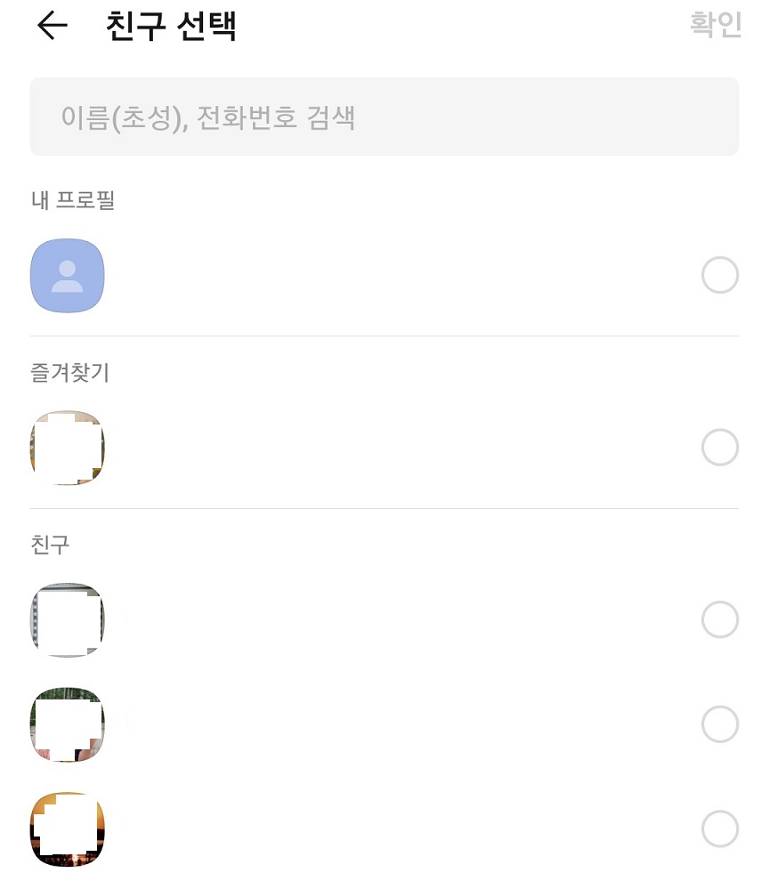 6. 친구를 선택했으면 우측 상단에 확인을 클릭한다.
