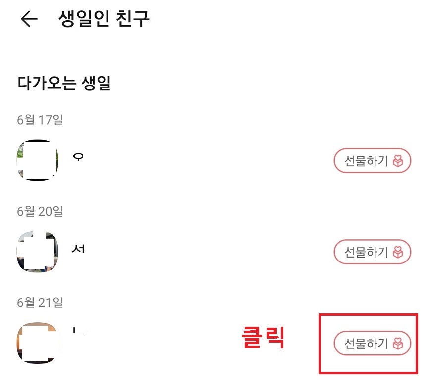 2. 그럼 곧 생일인 친구 목록이 나타난다.