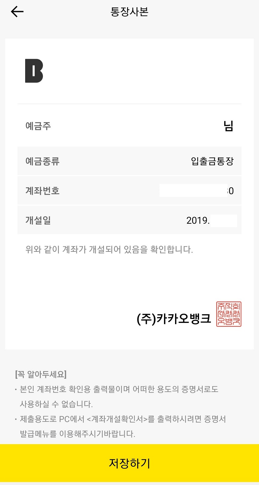 사용하는 용도에 따라서 카카오뱅크 통장사본과 계좌개설확인서 중 선별하여 사용하면 된다.