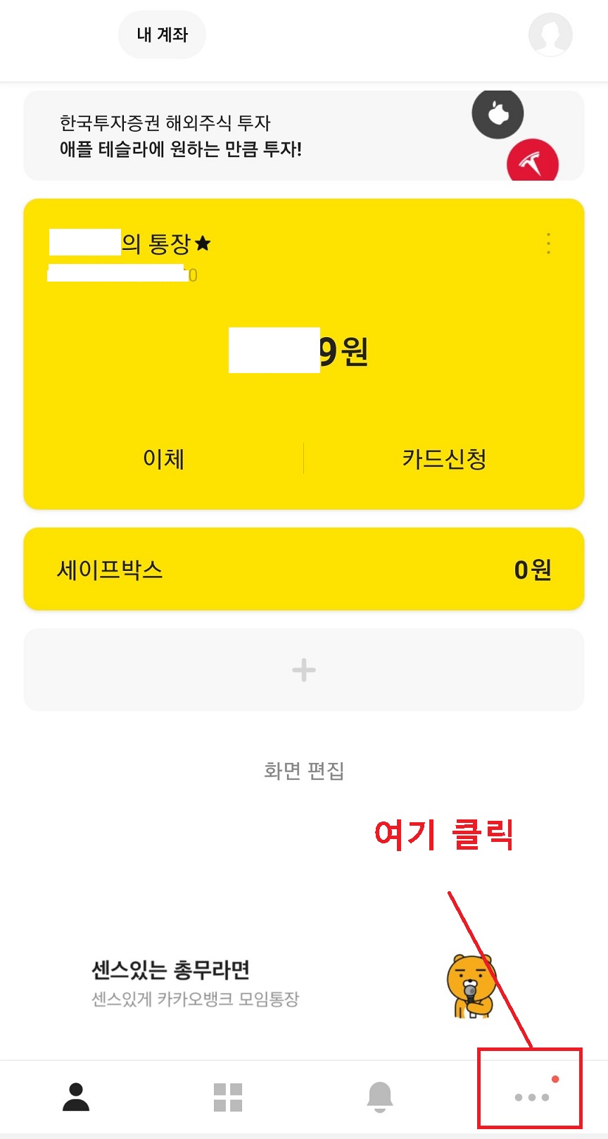 1. 카카오뱅크 내 계좌에서 하단 점 3개 버튼을 클릭한다.