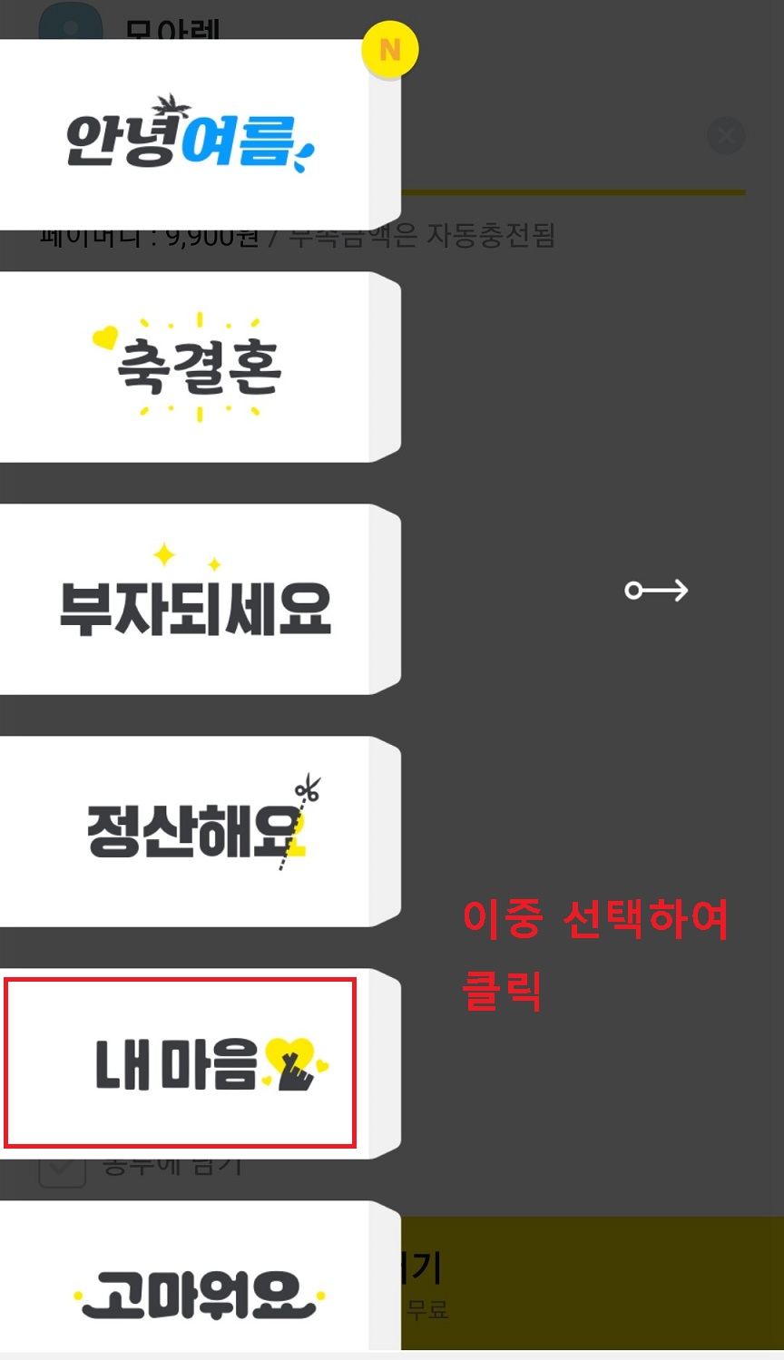 5. 그럼 봉투 위에 글자가 있는 것이 보이는데 이중 마음에 드는 봉투를 클릭한다.