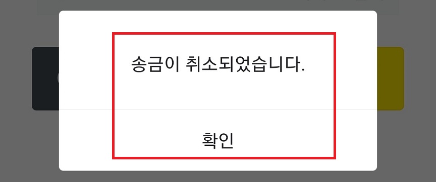 3. 송금이 취소되었습니다라는 메세지가 나타난다.