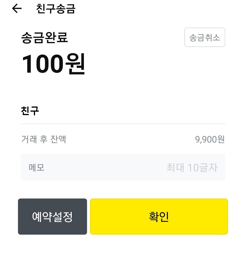 그럼 바로 카카오페이 송금하기가 완료된다.