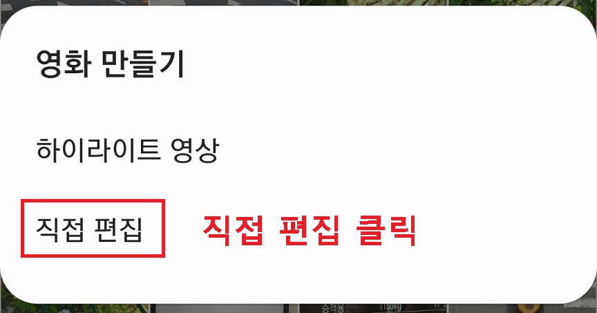 3. 영화 만들기를 누르면 아래쪽에 하이라이트 영상과 직접 편집 중 하나를 선택할 수 있게 되는데 먼저 하이라이트 영상을 클릭해보자.