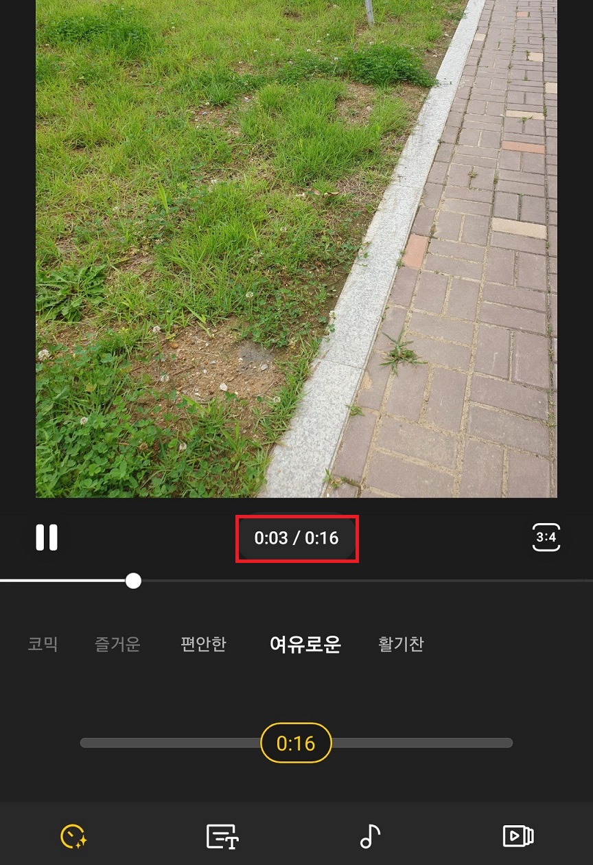 영상 아래 여유로운 이라고 표시되어있는데 이건 여유로운 스타일의 배경음악이 재생되고 있는 것이다.