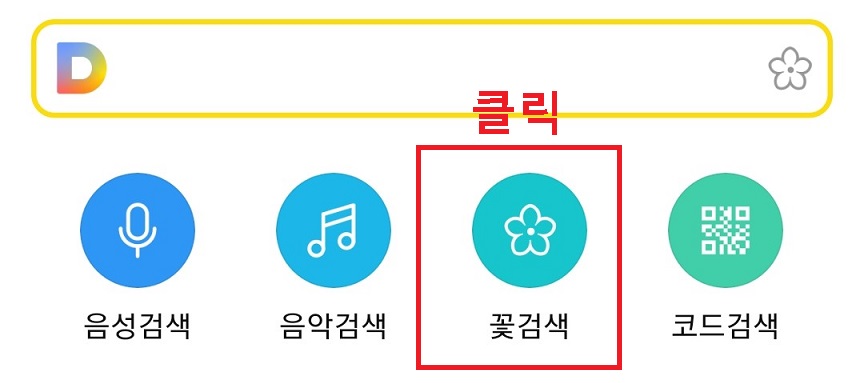 4. 그럼 아래쪽에 음성검색 음악 검색 꽃 검색 코드 검색 메뉴가 생긴다.