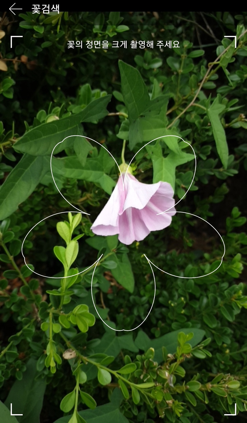 5. 꽃의 정면을 크게 촬영해 주세요 라는 메시지가 보인다.