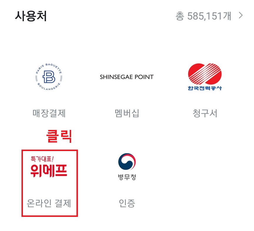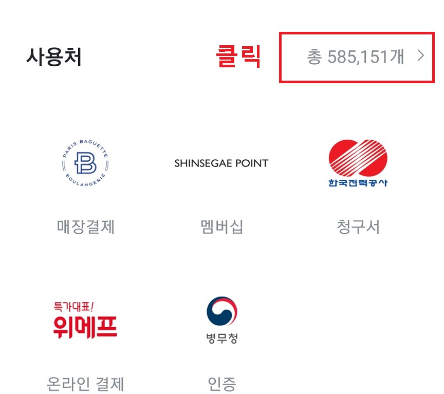 3. 그럼 카카오페이 사용처가 나오는 현재 585,151개의 사용처에서 가능한 것을 확인할 수 있다.