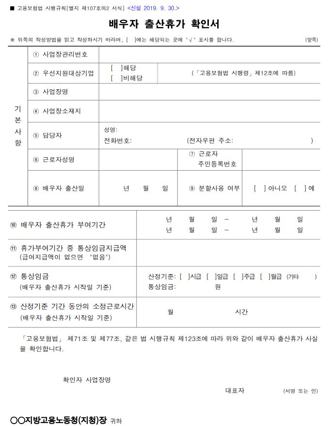 사업주가 먼저 배우자 출산휴가 급여 확인서를 고용센터에 제출하고