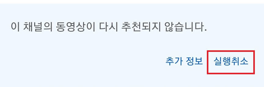 여기서 실행 취소를 누르면 채널 추천 안 함 실행한 것이 취소되고 해당 채널의 동영상이 계속 추천된다.
