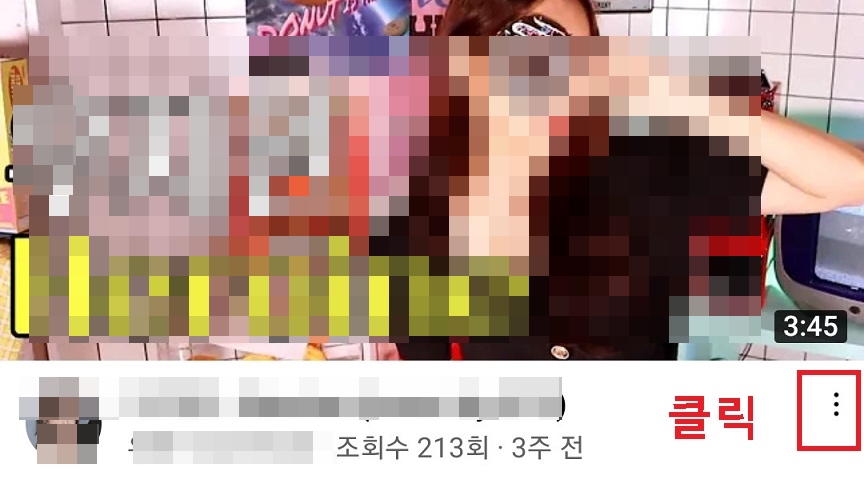 1. 마음에 들지 않는 영상의 제목 오른쪽에 점 3개 모양의 아이콘을 클릭한다.