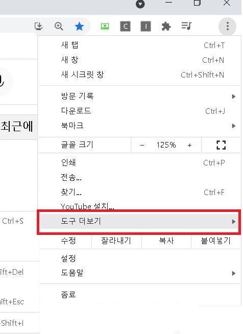2. 그럼 아래쪽에 메뉴가 생기는데 도구 더보기를 클릭한다.