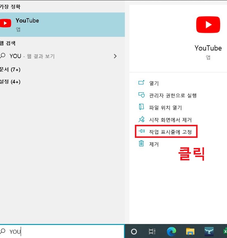 유튜브 작업표시줄에 고정