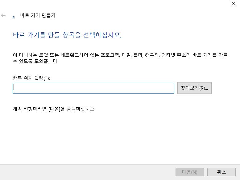 2. 그럼 바로가기 만들기 대화창이 생긴다.