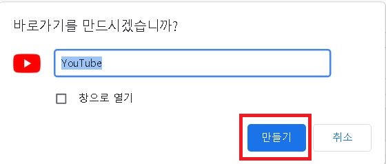 유튜브 창에서 바로가기 만들기(크롬)