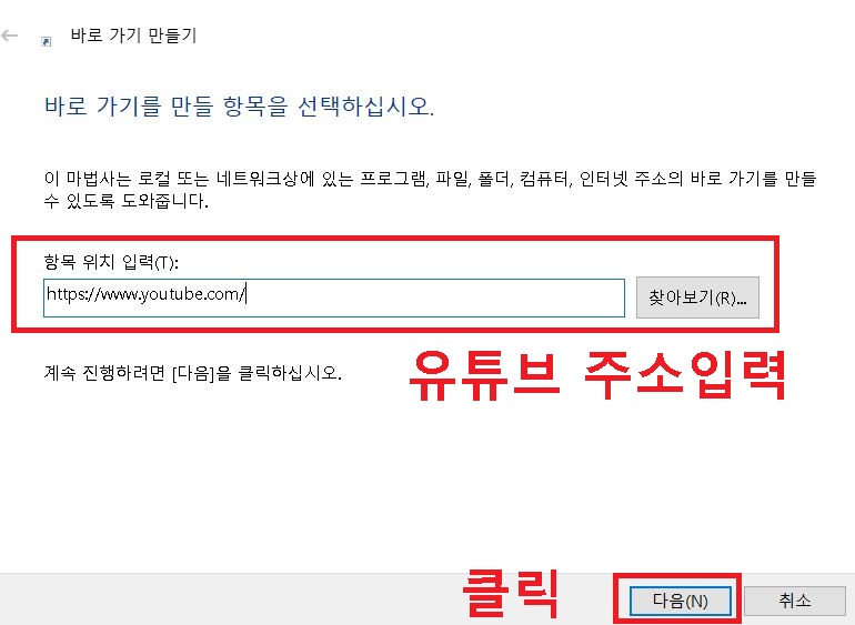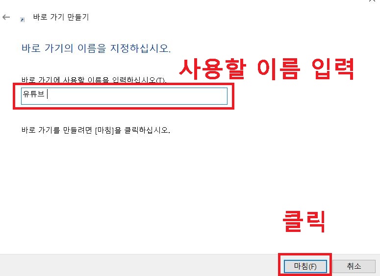 4. 화면 중간 박스에 유튜브 바로가기 만들기에 사용할 이름을 입력한다.