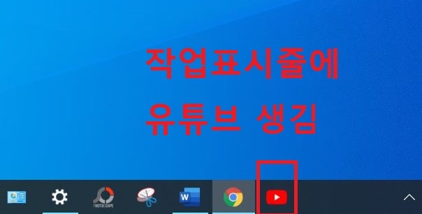 2. 이렇게 하면 바탕화면 아래쪽 작업표시줄에 유튜브 아이콘이 생긴다.
