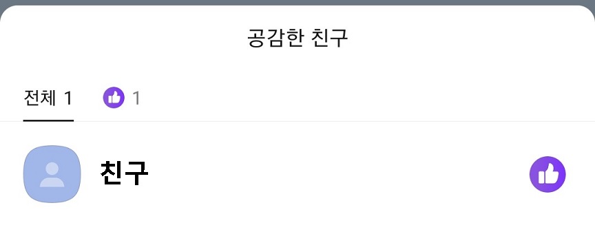 2. 그럼 아래쪽에 공감한 친구라는 창이 생긴다.