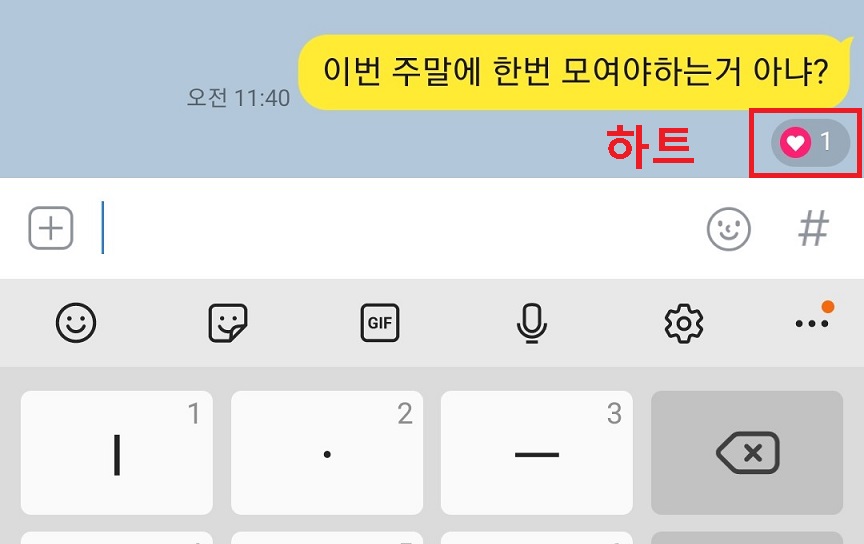 4. 그럼 말풍선 바로 밑에 하트 표시가 생겼다.