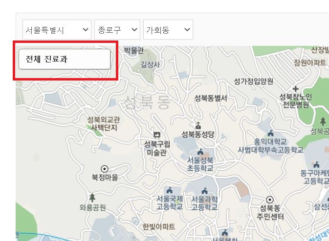 지도 좌측 상단에 전체 진료과라고 표시된 것을 클릭한다.