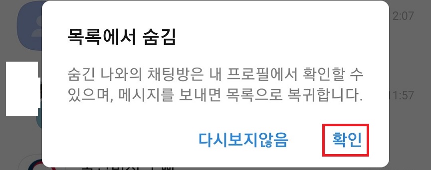 이번에는 채팅방 숨김 하는 방법을 알아보겠다.