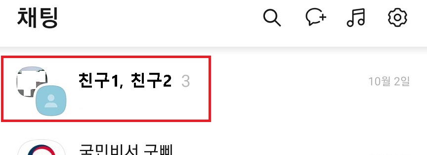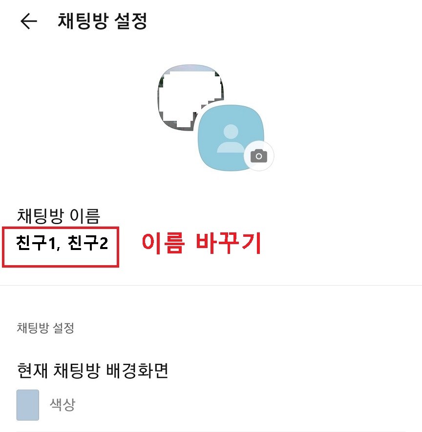 4. 이렇게하면 채팅방 설정 페이지가 나오는데 채팅방 이름에 친구 1, 친구 2라고 표시된 것을 확인할 수 있다.