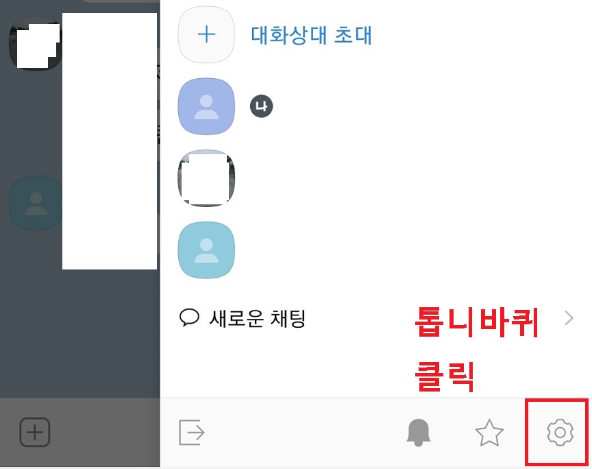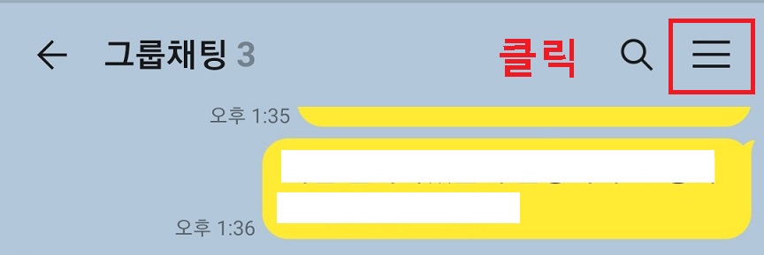 2. 채팅방 우측상단에 선 3개 모양을 클릭한다.
