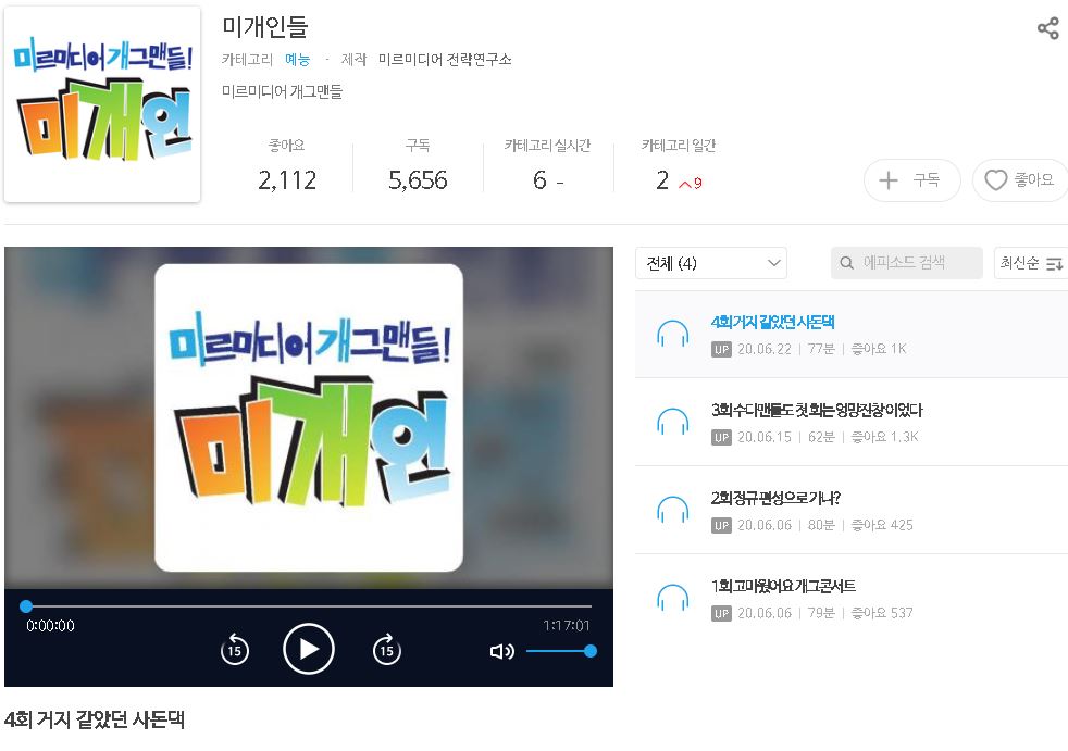 미르 미디어 개그맨들 미개인들은 3회부터 팟빵으로만 업로드된다.