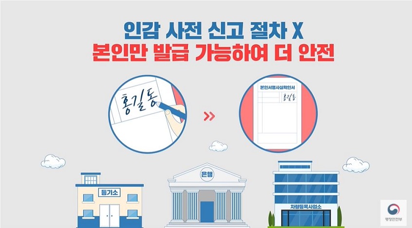 하지만 인감증명서 만들려면 인감도장을 만들어야 하고 주민센터에 직접 방문해서 발급받아야 하는 등의 불편함이 있다.